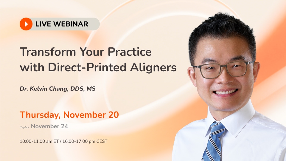ZOOM WEBINARJoin Dr. Kelvin Chang, respected orthodontist and Chair of the Education Committee for the Taiwan Association of Orthodontists, as he explores how Direct-Print Aligners are reshaping clinical workflows and treatment outcomes worldwide.
